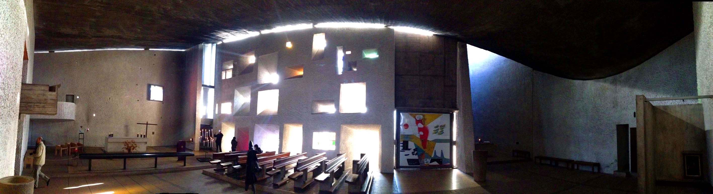 Icona principe del progetto della chiesa contemporanea, la cappella di Ronchamp è frutto tanto dell’inventiva di Le Corbusier quanto della sagacia di p. Couturier, che glie la commissionò. Per questo oltre agli aspetti relativi al disegno architettonico e alle soluzioni artistiche, ha senso osservarne l’assetto liturgico, per quanto preceda di quasi un decennio il Concilio Vaticano II. Le sedute del presidente e degli accoliti si trovano di lato all’altare, diagonalmente disposte così da rivolgersi, sia a questo, sia all’assemblea. Sono di legno, individuali, mobili, hanno un disegno coerente con quello dell’architettura, si distinguono per l’altezza dello schienale.