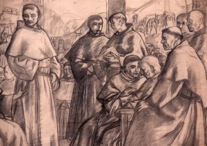 I cartoni per gli affreschi della Cappella di san Francesco di Ubaldo Oppi, esponente con Sironi e Funi del Gruppo Novecento, sono stati ritrovati nel corso del riordino e dell’inventariazione dell’Archivio Storico della Veneranda Arca di S. Antonio a Padova. Questo progetto culturale, uno dei piů importanti tra quelli che hanno connotato la direzione dell’ente negli ultimi cinque anni, ha permesso, tra le tante scoperte, anche il ritrovamento di altri rilevanti documenti artistici contemporanei.